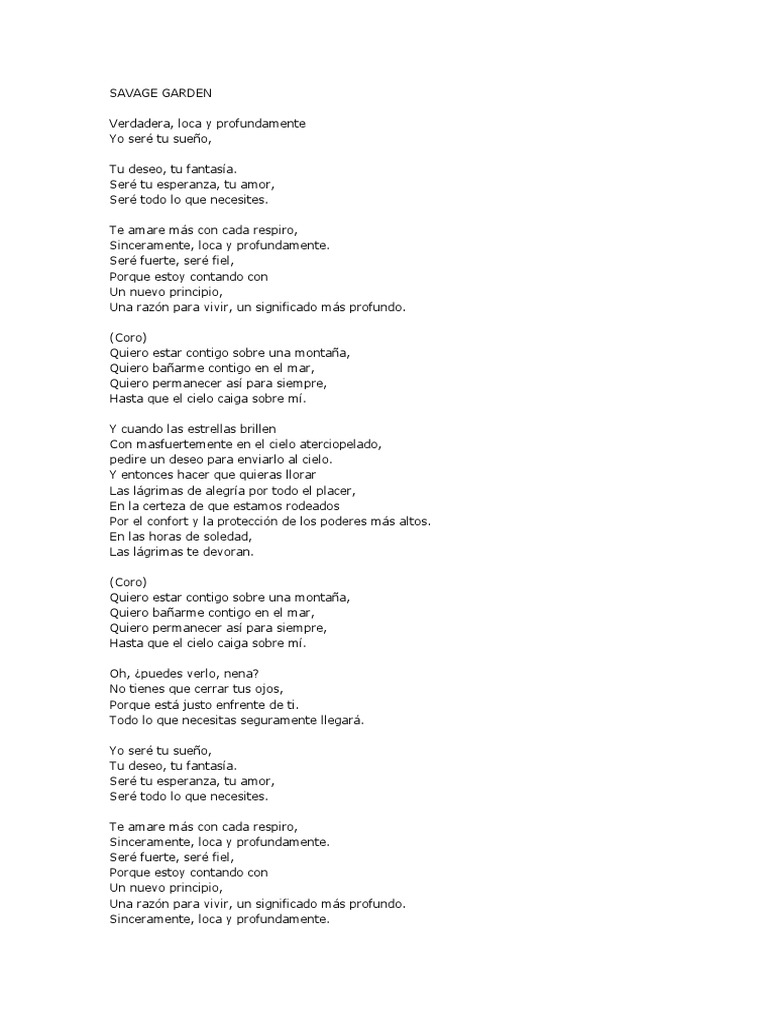 Letra En Espanol Cancion Savage Garden Truly Madly Deeply